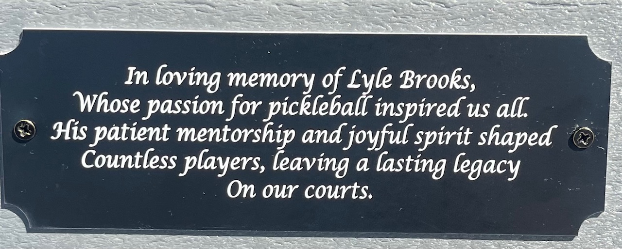 Friends of Lyle Brooks donate benches to Hillsboro Pickleball Association in his memory. Mark and Andrea Bush, Heidi Bell, Joe Sodini and Larry and Terri Roberts donated four Polywood maintenance free benches for use at the Railroad Street Pickleball Courts in Hillsboro. Lyle loved the sport of Pickleball and is missed by all who had the pleasure to know him.